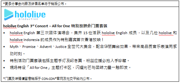 「CON-CON® HONG KONG」是首个由香港主导推动的旗舰级IP文化活动,彰显香港在亚洲跨界IP潮流文化中的策源地、创造者及文化定义者。活动不只是展示IP,而是让IP「连结」起来,以IP作为主轴,把沉浸式体验、音乐表演、亚洲创作人对谈、娱乐、限定市集及IP配对整合为一个可持续运作的「盛事IP」,更是一个可累积、可演化、可交棒的文化资产。第一站从香港出发,走向一个可持续延伸的IP文化未来。