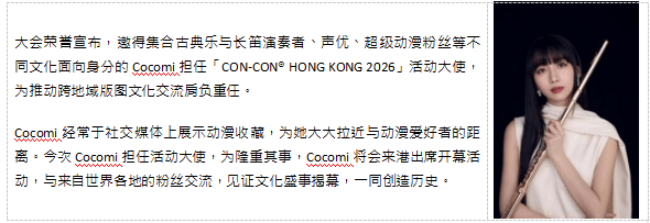 Cocomi担任「CON-CON® HONG KONG 2026」活动大使 来港见证文化盛事开幕创造历史